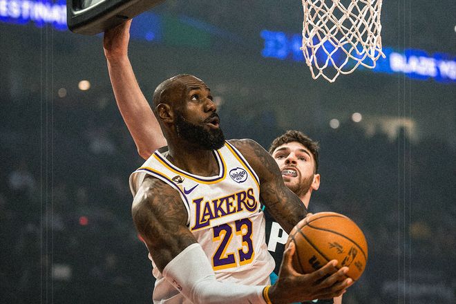 詹姆斯在复出前去南湾湖人时,就表示蒂米有潜力,没想到今天还真让他打出来了!别看他长得像克莱,这家伙今天的三分确实也有点克莱的味道。而且,他还是一个内线球员,所以今天在禁区也有一番作为。但即便是这些角色球员的神奇发挥,也难以填补巨大的分差。詹姆斯肯定也知道,他自己不再是2018年的那个他,对比赛的影响力大不如前。他确实是打出了40岁以上球员里罕见的表现,还能冲进内线完成暴扣,但体力已经不足以支撑他这么打完全场。而且更糟糕的是,末节中段,詹姆斯封盖克林根的时候,胳膊打到了对手面部,被吹罚一次一级恶意犯规。