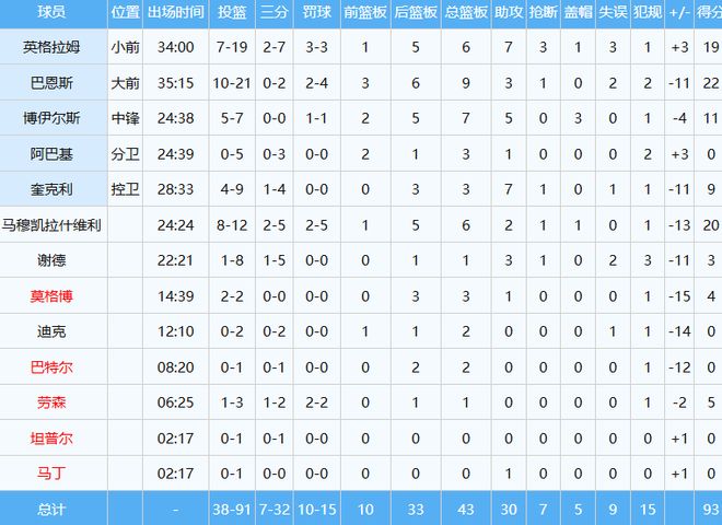 湖人数据如下: