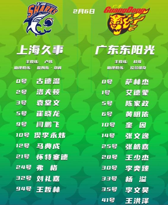 广东:奎因6记三分37分14篮板5助攻2抢断2盖帽,萨姆纳26分4助攻,黄明依10分。上海:洛夫顿31分7篮板11助攻,怀特塞德14分12篮板,马典成15分,王哲林10分,弗格4记三分18分。