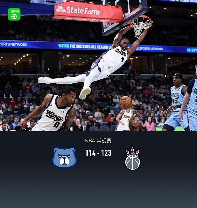 第四节灰熊亨德里克斯拿下10分,国王威斯布鲁克拿下10分,最终灰熊114-123不敌国王