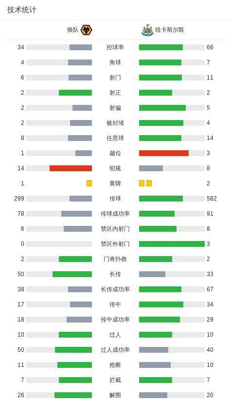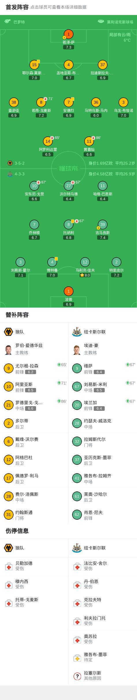狼队0-0纽卡,马特乌斯-马内、乔林顿造险